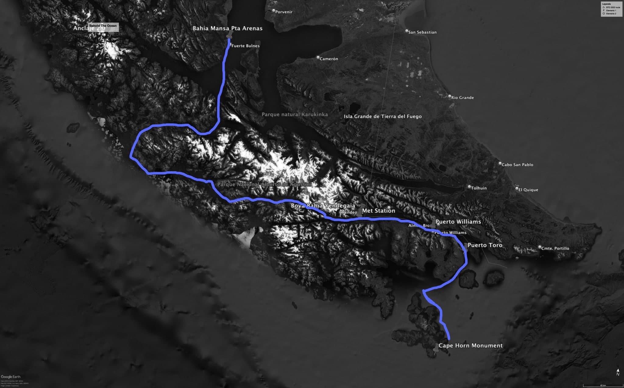 We will sail from Punta Arena along the Strait of Magellan to Yendegaia to recover a sensor from the Beagle Channel from a past research project Max worked on. Passing the famous glacier alley and Chilean fjords, we’ll continue to the Met Station and will eventually reach Puerto Williams where we plan to spend a day. We’ll continue to Puerto Toro, the southernmost permanently inhabited community on the globe, and navigate all the way down to Cape Horn and its monument, the southernmost point of the Americas – Antarctica is just around 600 km away from here, on the other side of the Drake Passage.